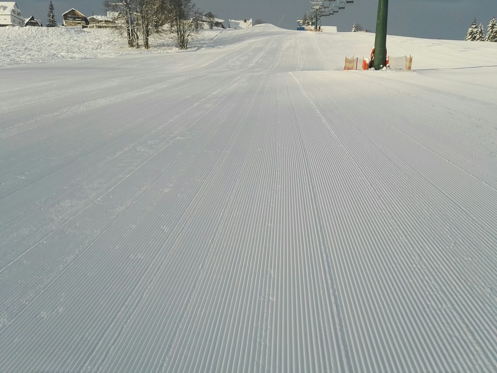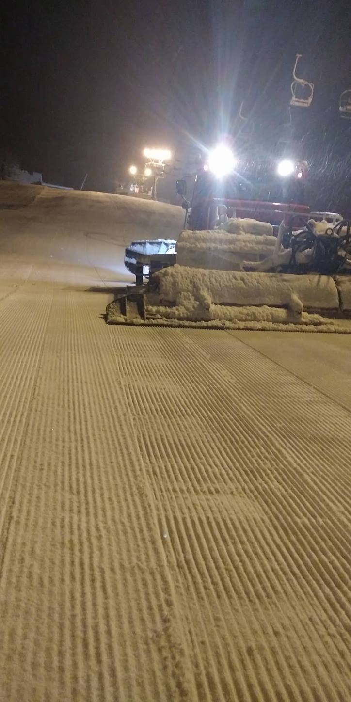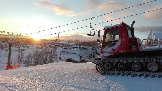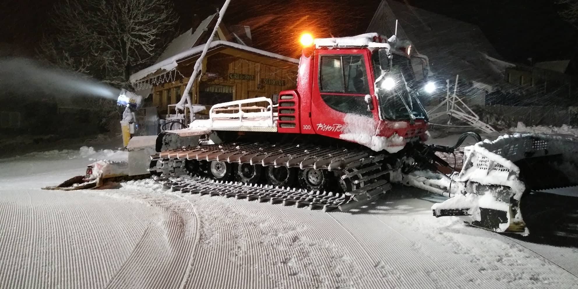 Lyžařský vlek je osvětlen, zasněžován sněžným dělem nejnovější generace a trasa je každý den vylepšována rolbou.